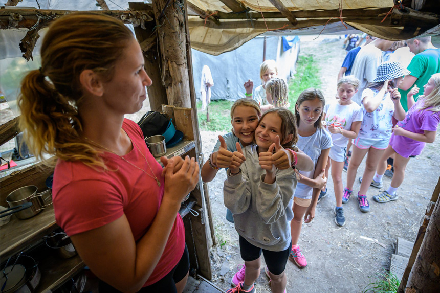 V této malebné krajině s dětmi prožíváme při našich originálních hrách každoročně spoustu dobrodružství, napětí, ale také s táborem neodmyslitelně spjaté legrace.